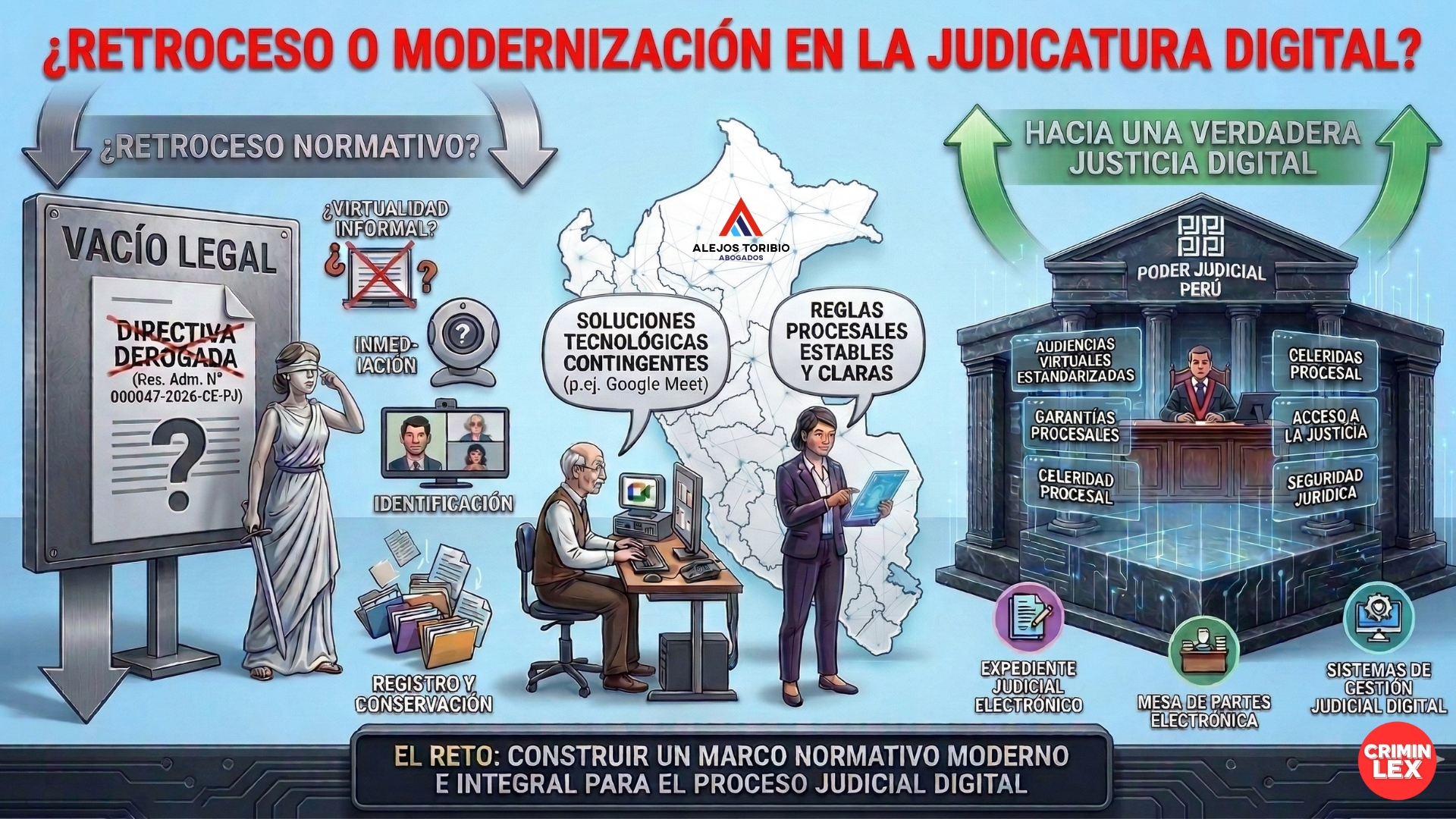 La virtualidad procesal constituye uno de los pilares de este proceso de modernización. Por ello, la eliminación de una directiva que regulaba el uso de videoconferencias sin una normativa sustitutoria inmediata puede interpretarse como un retroceso normativo dentro de una política que formalmente busca avanzar en sentido contrario.